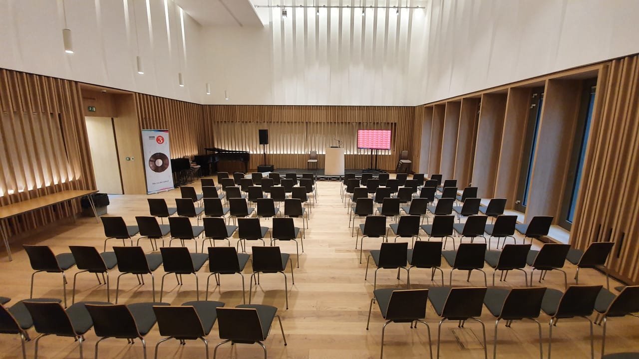 Originally opened by the Hallé’s Patron HRH The Duchess of Edinburgh GCVO in 2013, the facility is concentrated around a restored, Grade II listed, former church. A three-storey extension, The Oglesby Centre, was opened in November 2019 and includes a number of new practice rooms and performance spaces.