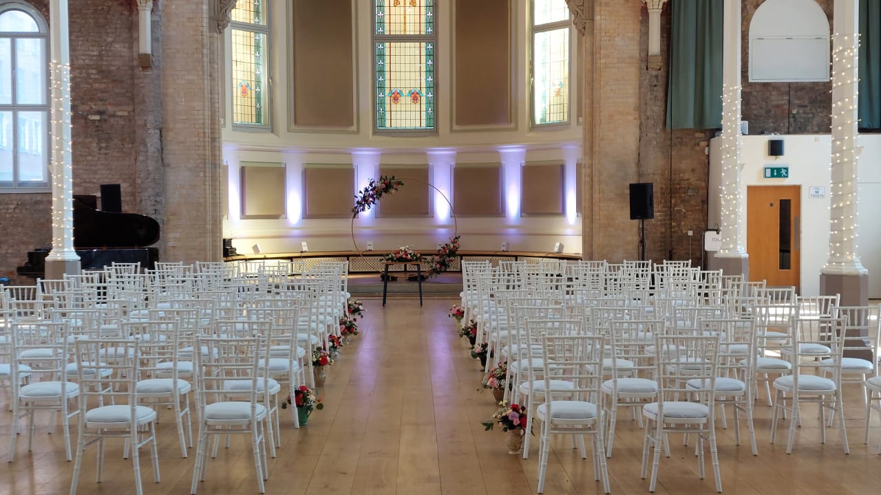Hallé St Peter’s is available to hire for events; a venue suitable for a wide variety of events. The elegant interior provides a beautiful backdrop for weddings, parties, corporate events, meetings, conferences, receptions and more.